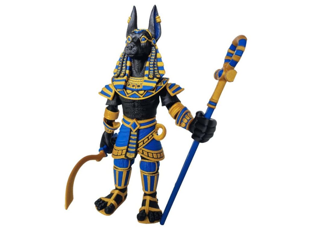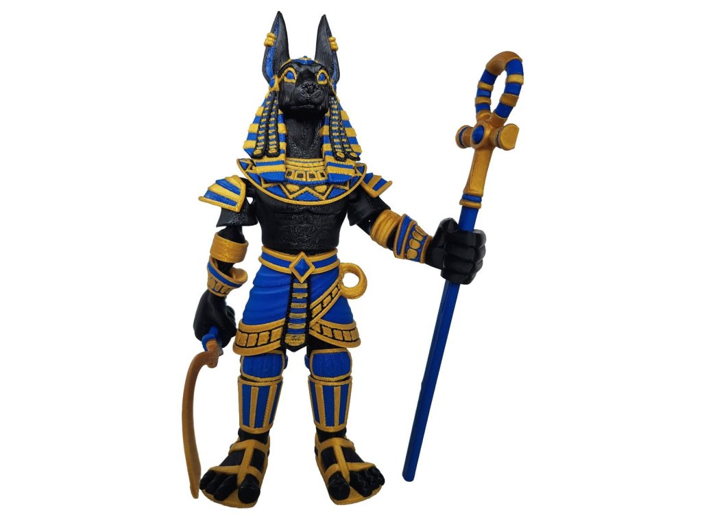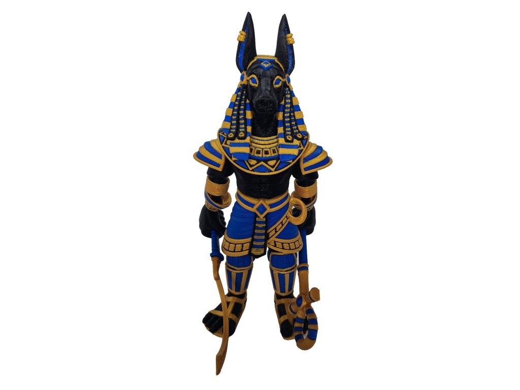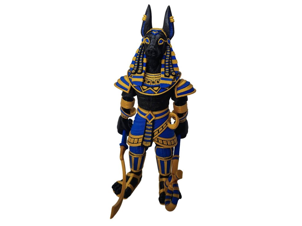 Dokáže hýbat hlavou, rukama, nohama a hýbe se v pase. Ruce se skládají ze 3 dílků. Dlaně má zavřené v pěst, při tom v nich má otvor do kterého lze vložit meč a žezlo. Meč může držet buďto v jedné ruce, nebo i oběma rukama. Nohy jsou ze dvou dílků, které se volně pohybují. Když anubise postavíte na nohy, tak dílky v nohách, v pase a hlava do sebe zapadnou a pak dokáže sám stát. Meč může mít v ruce, nebo u pasu kde pro něj má také otvor.