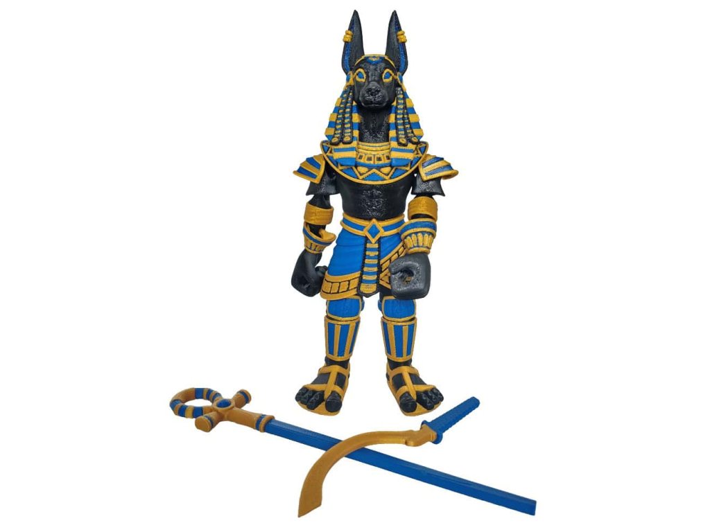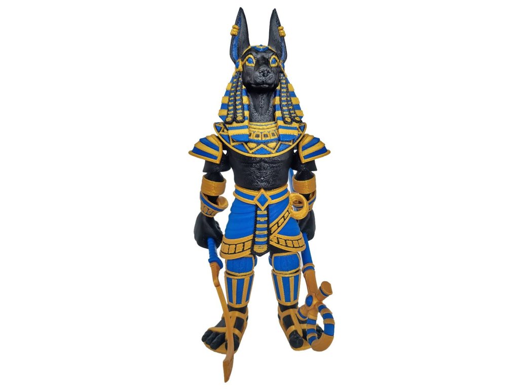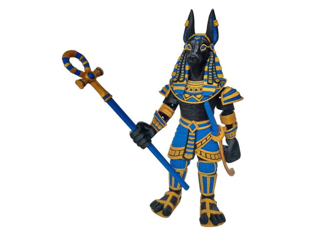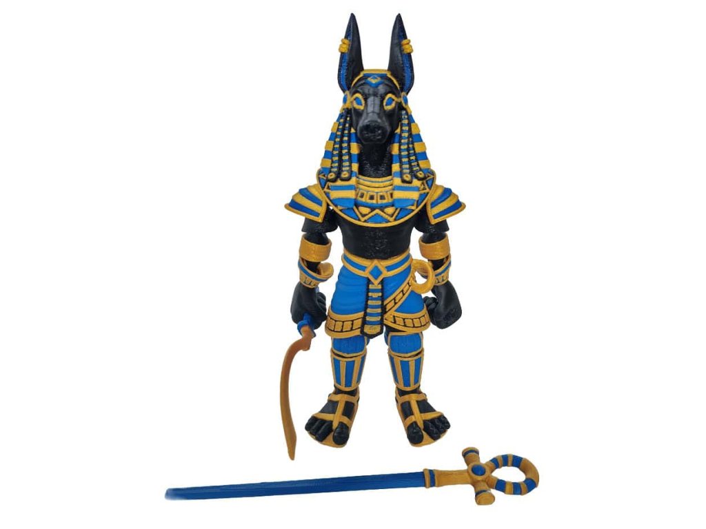 Dokáže hýbat hlavou, rukama, nohama a hýbe se v pase. Ruce se skládají ze 3 dílků. Dlaně má zavřené v pěst, při tom v nich má otvor do kterého lze vložit meč a žezlo. Meč může držet buďto v jedné ruce, nebo i oběma rukama. Nohy jsou ze dvou dílků, které se volně pohybují. Když anubise postavíte na nohy, tak dílky v nohách, v pase a hlava do sebe zapadnou a pak dokáže sám stát. Meč může mít v ruce, nebo u pasu kde pro něj má také otvor.