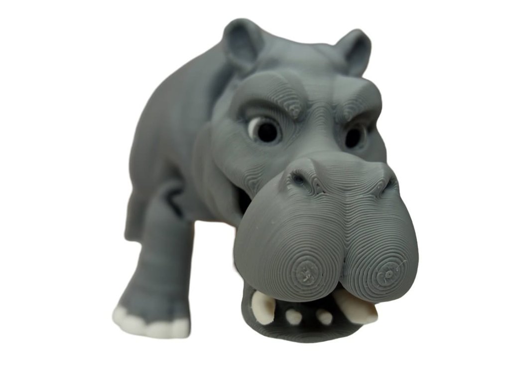 Perfektně barevný, barvy nejsou naneseny povrchově, barevnost hrocha jsme docílili tím, že ho vyrábíme ze 3 materiálů na jednou. Proto je barevný do hloubky a s vysokou přesností.