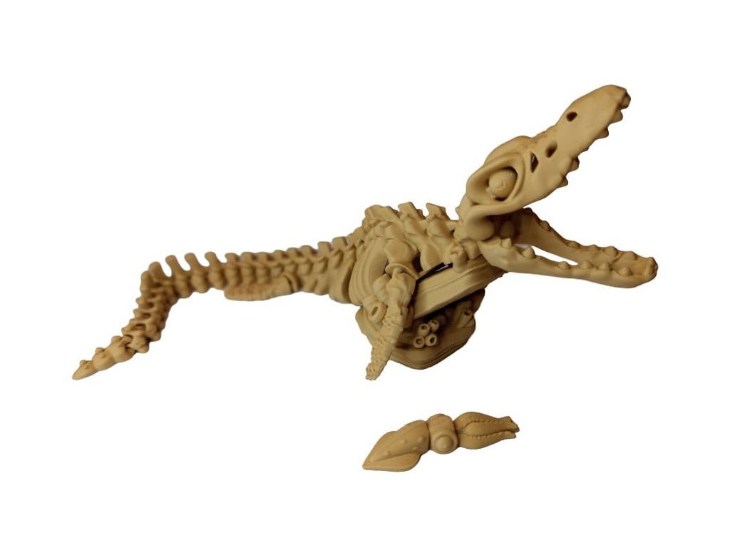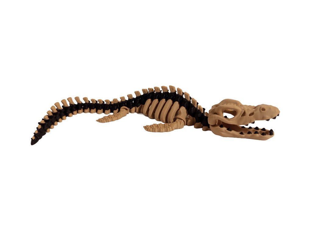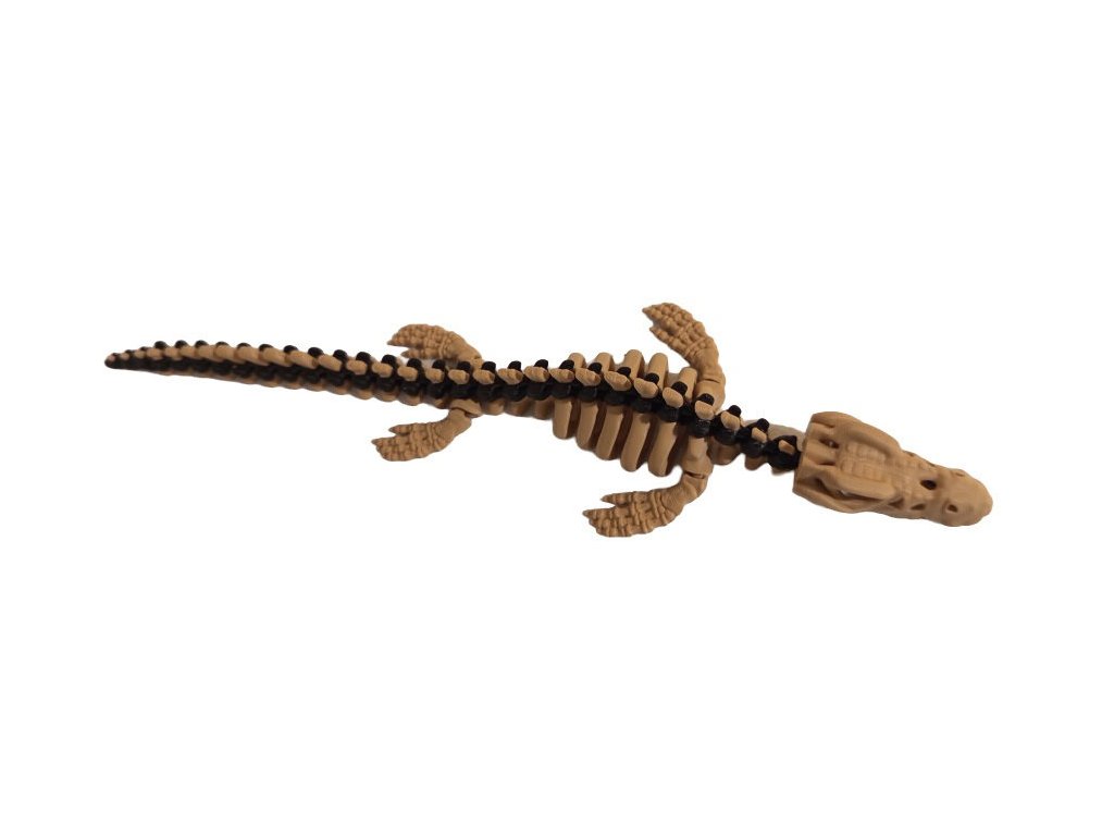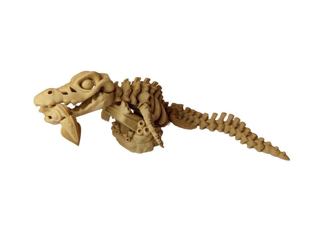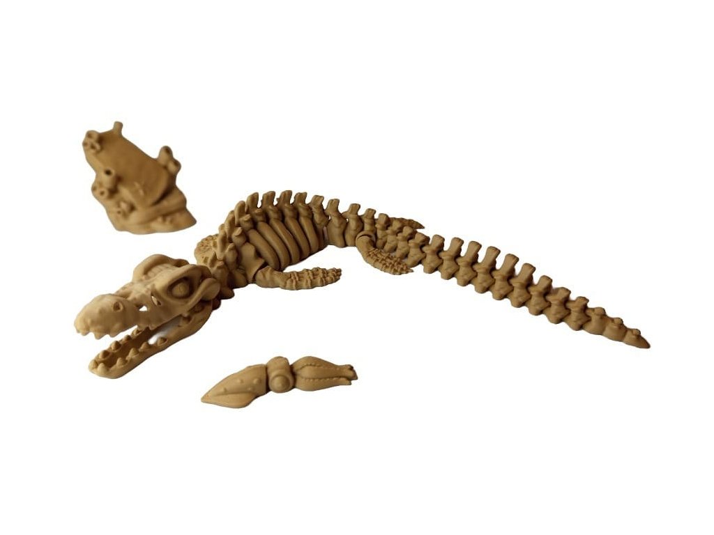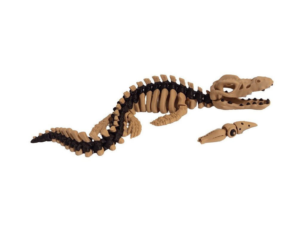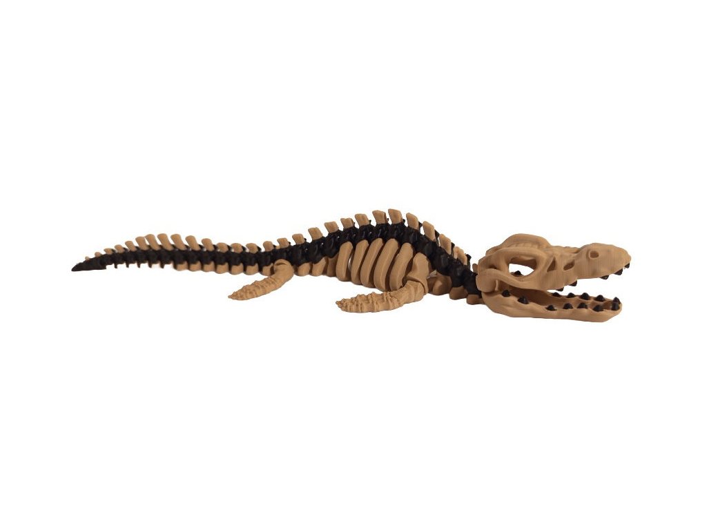 Má pohyblivé nohy a páteř. Skládá se z 33 dílků, které jsou propletené jako řetěz přitom nejsou nijak lepené, mosasaurus je vyrobený v jednom kuse a při tom jsou mezi jeho jednotlivymi dílky mezírky. To je proto, že k jeho výrobě používáme moderní 3D tiskárny.
