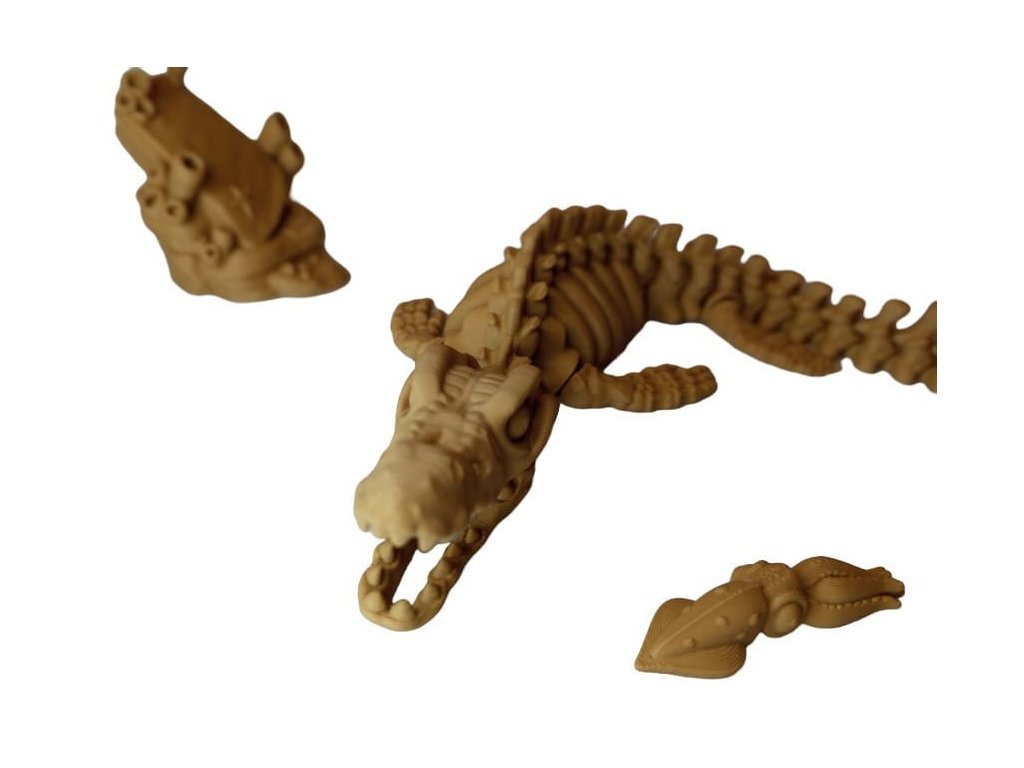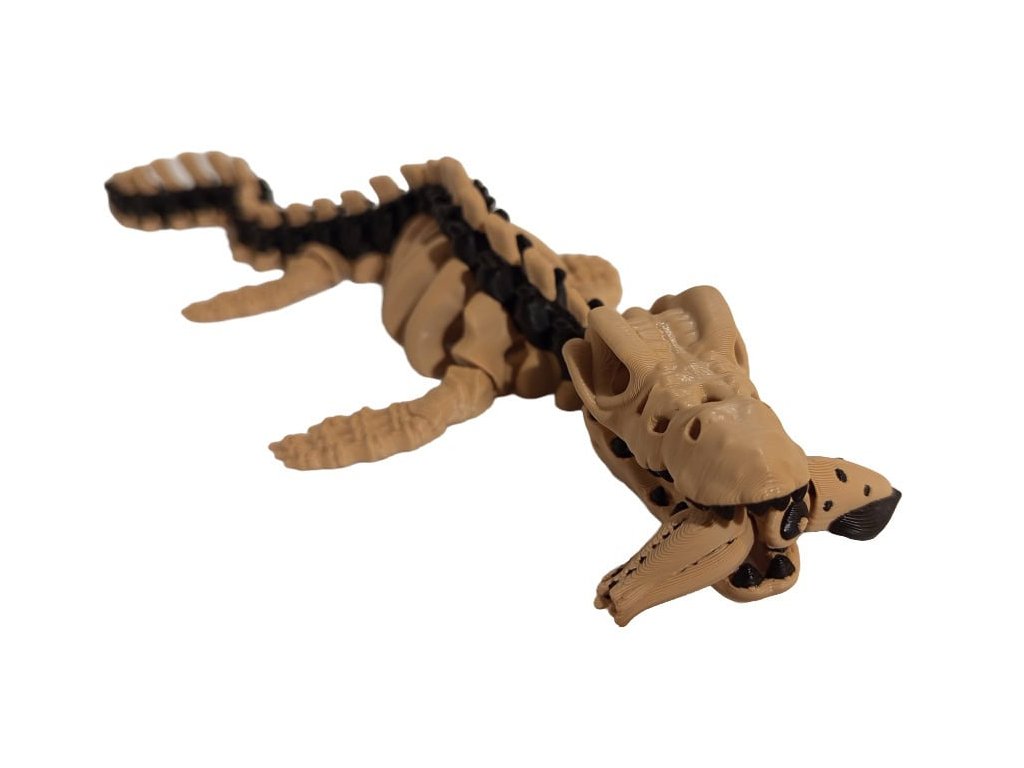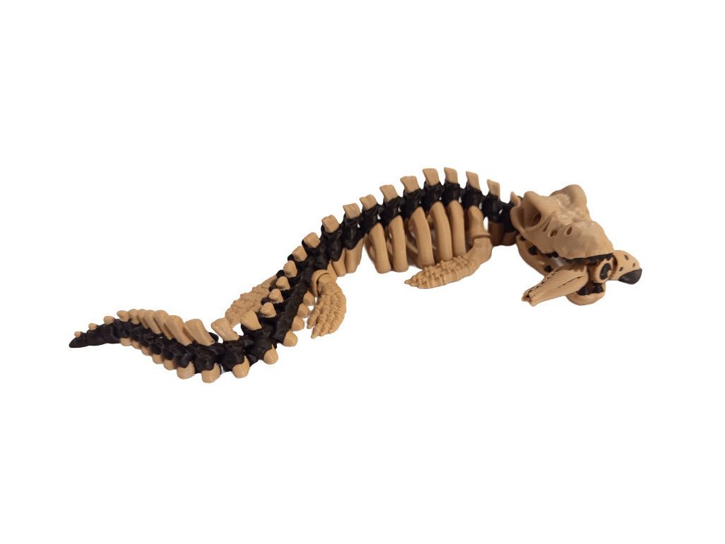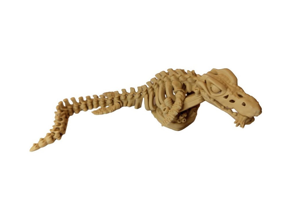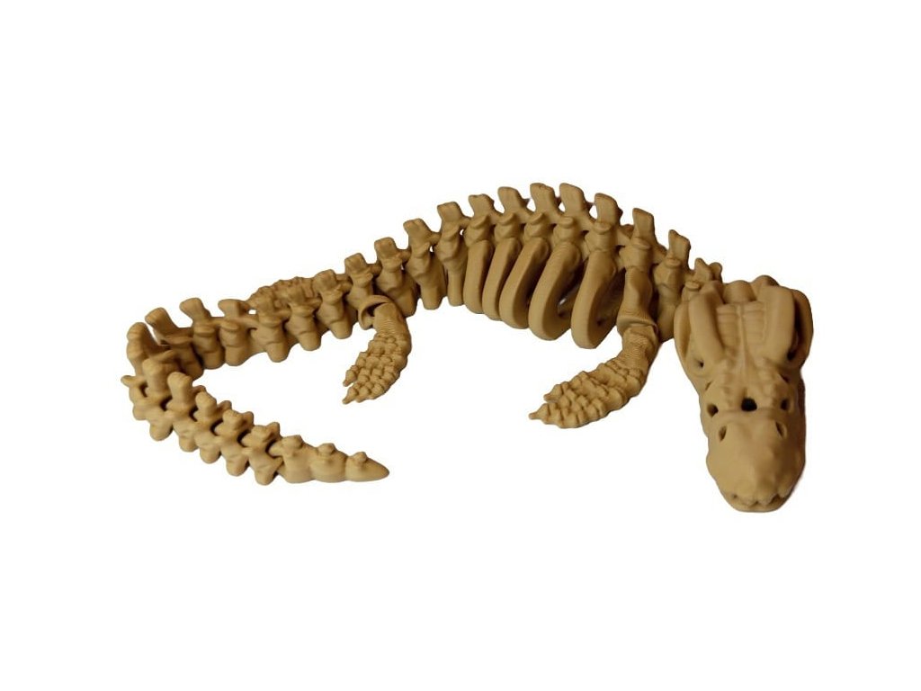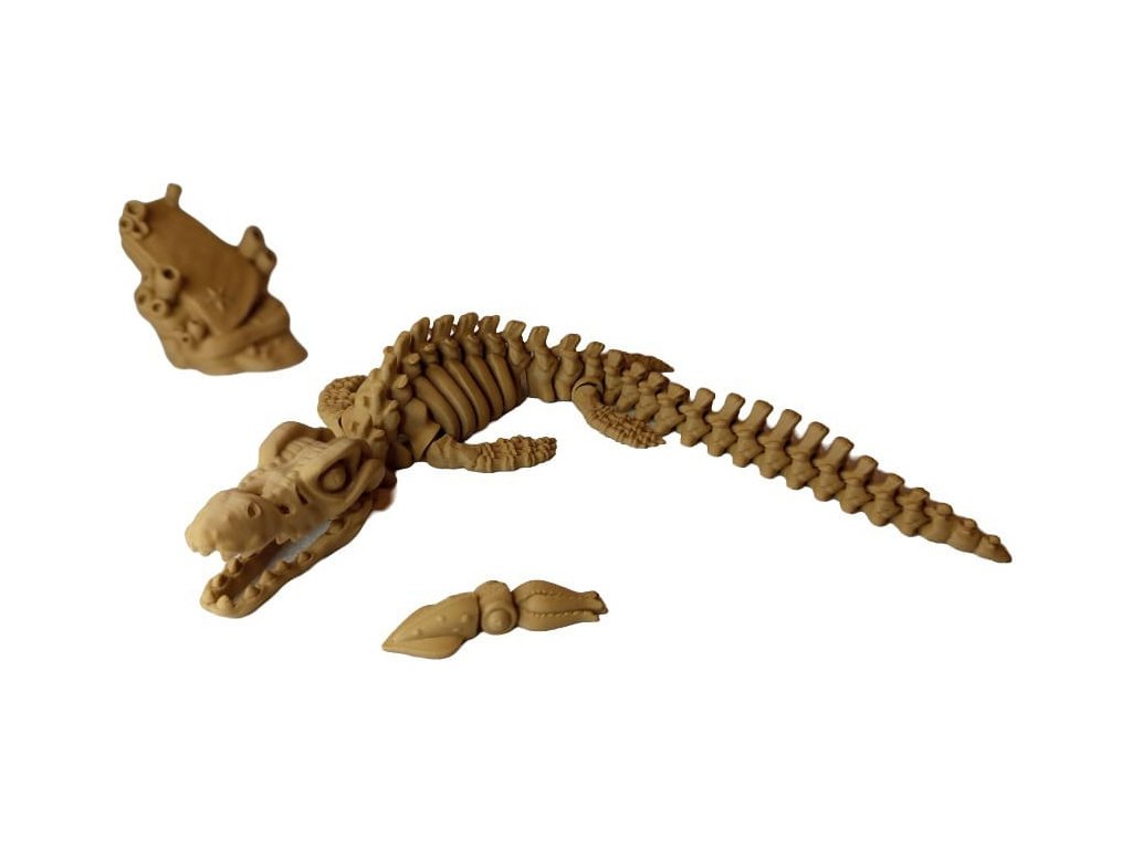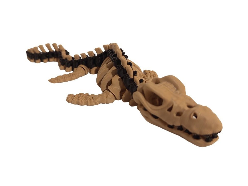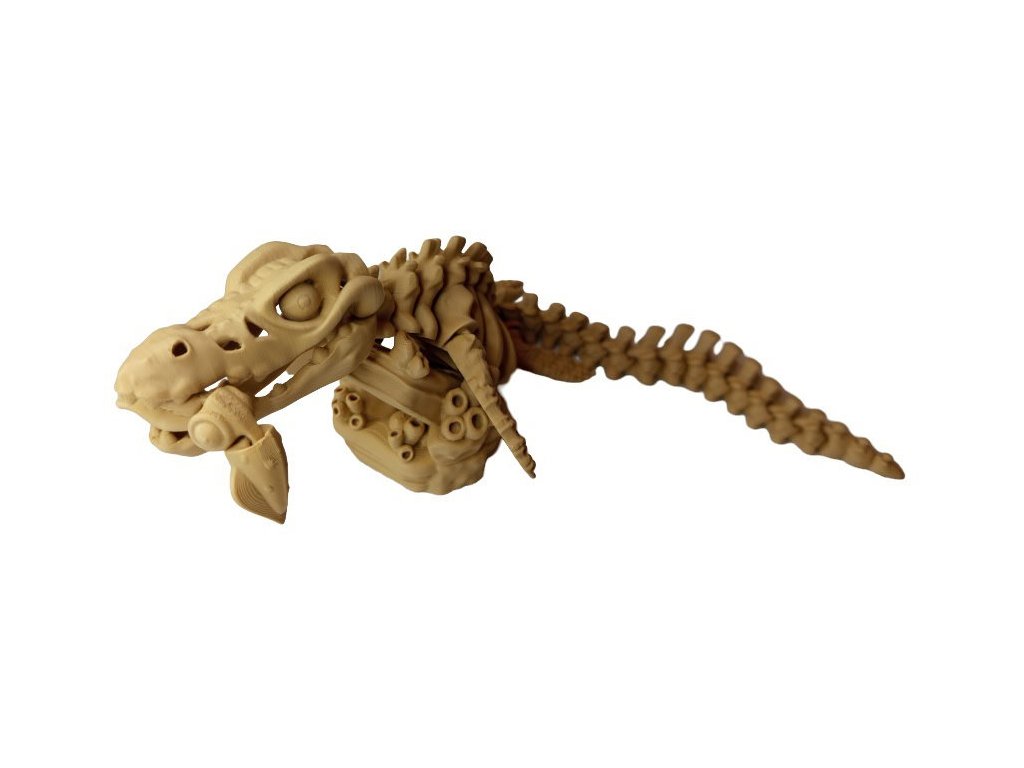 Má pohyblivé nohy a páteř. Skládá se z 33 dílků, které jsou propletené jako řetěz přitom nejsou nijak lepené, mosasaurus je vyrobený v jednom kuse a při tom jsou mezi jeho jednotlivymi dílky mezírky. To je proto, že k jeho výrobě používáme moderní 3D tiskárny.