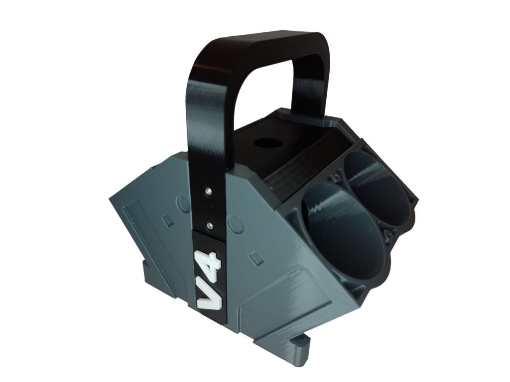 Plechovky se vkládají do otvoru, pro píst, takže nosič pojme 4ks plechovek s průměrem 66mm (to je například klasické pivo 0,5l).
