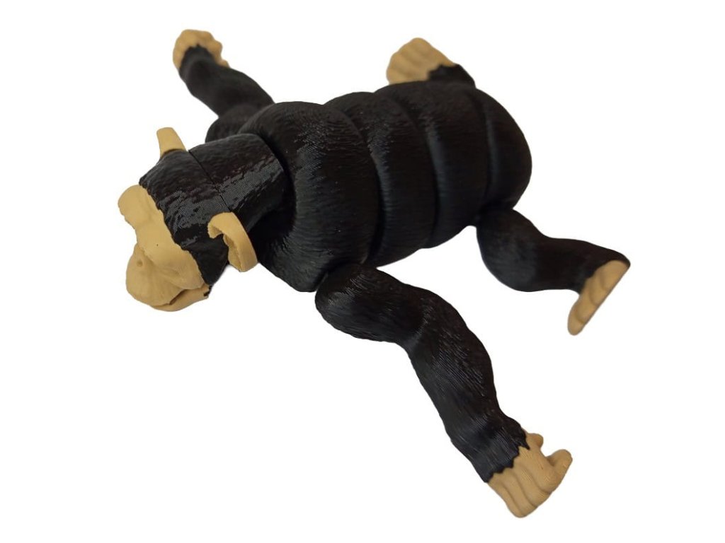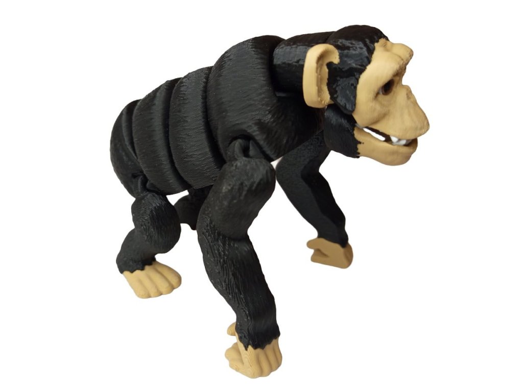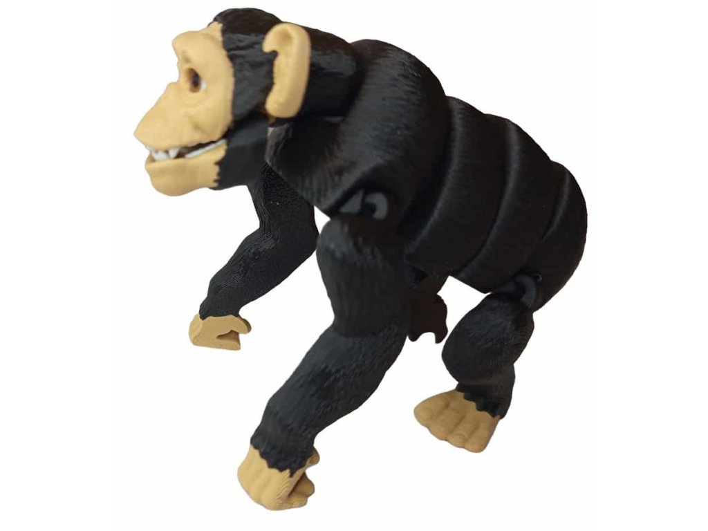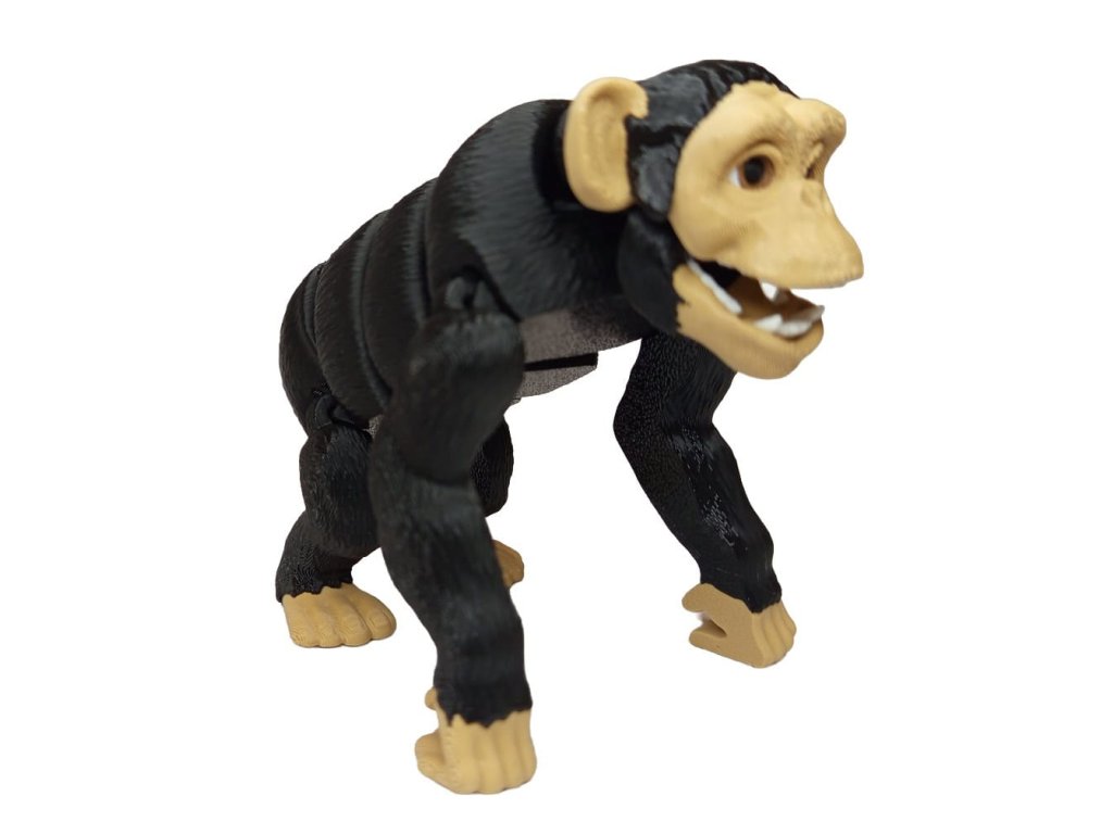 Perfektně barevný, barvy nejsou naneseny povrchově, barevnost šimpanze jsme docílili tím, že ho vyrábíme ze 4 materiálů na jednou. Proto je barevný do hloubky a s vysokou přesností.
