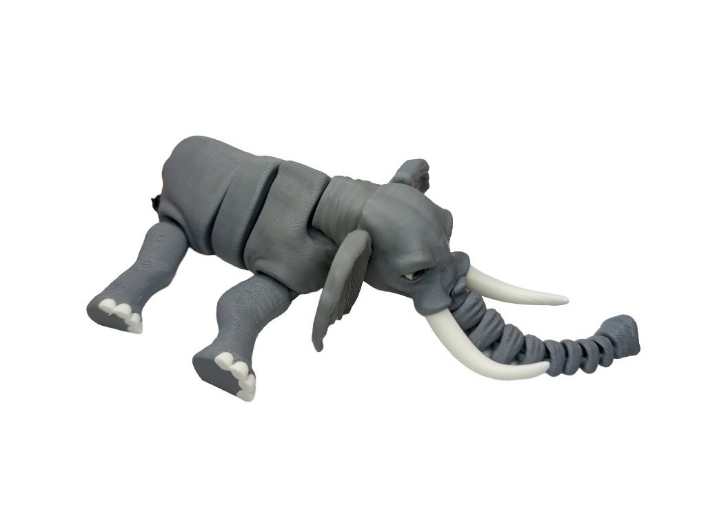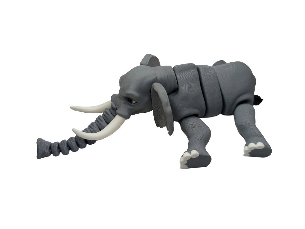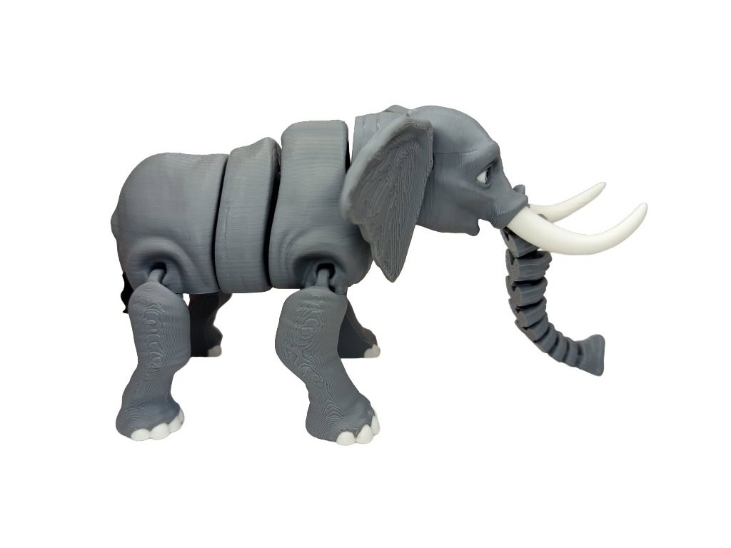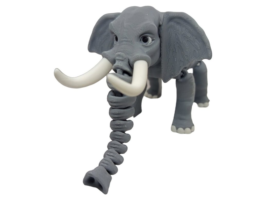 Perfektně barevný, barvy nejsou naneseny povrchově, barevnost slona jsme docílili tím, že ho vyrábíme ze 3 materiálů na jednou. Proto je barevný do hloubky a s vysokou přesností.