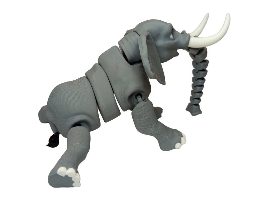 Dokáže hýbat nohama, hlavou do stran, učima, ocasem a má kloubový chobot.